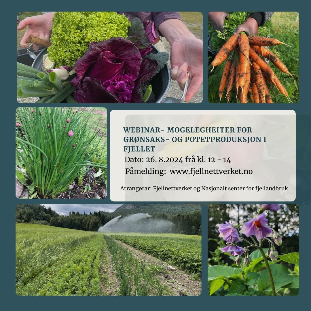 Fjellnettverket og Nasjonalt senter for fjellandbruk inviterer til webinar med gode foredragshaldarar som vil gje deg inspirasjon, svar på spørsmål og gode tips til korleis du kan drive produksjon av grønsaker og potet i fjellet og kva dette med jordhelse eigentleg handlar om.