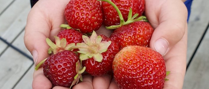 Vi starter kursserien med ei markvandring hos Snauan gård på Byneset. De produserer jordbær og bringebær i stor skala og omsetter via direktesalg og selvplukk. I tillegg har gården produksjon av hageblåbær og epler, samt honning og korn. I tillegg driver de en liten gårdscafe og er aktiv i Trondheim Matperler, et lokalt produsentnettverk med andre gårder. På Snauan er det mye å lære for den som er nysgjerrig på muligheter for produksjon av bær!