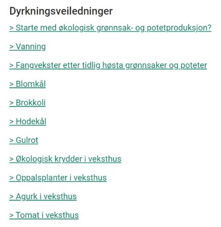 -se etter "Dyrkingsveiledninger for økologiske grønnsaker og poteter" i grønn nedtrekksfane.