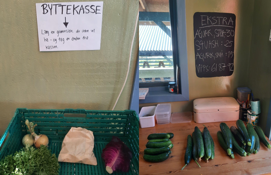 Vi har en abonnenementsordning hver torsdag. Da kommer 25 abonnementer til gården mellom klokka 15:30 og 19:00. Jeg høster alt i kasser, skriver hva de skal ta og så pakker de selv deres kasse. På den måten sparer jeg tid på å pakke, folk får følelsen av selv å kunne velge, og jeg slipper kjøring. Fordi jeg sparer tid på pakke, kan jeg også ha litt ekstra i kassene. Det tror jeg er viktig i dette området. Vi er på landet, og mange vil ikke bruke for mye penger på mat. Og ettersom alt skjer på gården kan jeg selge ting ved siden av – f.eks ekstra tomater eller bestilling av kjøtt og lignende – og jeg får en tett relasjon til mine kunder. Da kan jeg lære hva de liker og ikke, og få gode tilbakemeldinger. Det skaper veldig lojale kunder, når man sier hei og snakker litt hver uke.