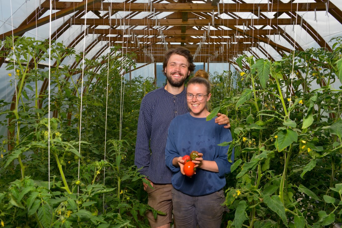 Sigurd (28): Jeg vokste opp i Trondheim i en familie med mye natur- og matglede. Vi hadde høner og poteter i hagen, og det har nok satt spor, selv om ingen så noen tegn til at jeg skulle bli bonde. Jeg gikk musikklinja på videregående, men lengta mer og mer mot et småbrukerliv på landet. Etter to somre som seterkar, ett år som omreisende gardsarbeider og to år på Sogn Jord- og Hagebruksskule, fikk jeg jobb på Grindal Ysteri. Her har jeg vært siden, og i 2019 etablerte jeg hagen med hjelp av Gaute Terjesson, som nå driver Bodø Grønt. I 2020 ville Elisabeth flytte hit, og mer og mer falt på plass.