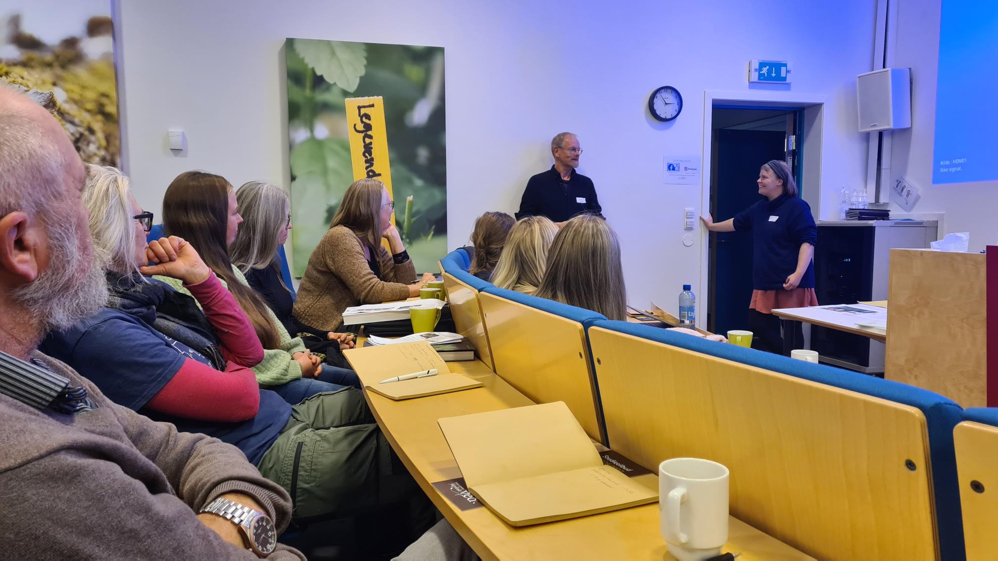 Omtrent 40 produsenter og folk fra støtteapparatet var samlet på Fagskolen Vea, som dannet en fin ramme for samlingen med sine grønne areal og historie - her har det vært utdanning i hagebruk og gartnerfag i over 100 år. Foto: Frøydis Linden / SFVL.