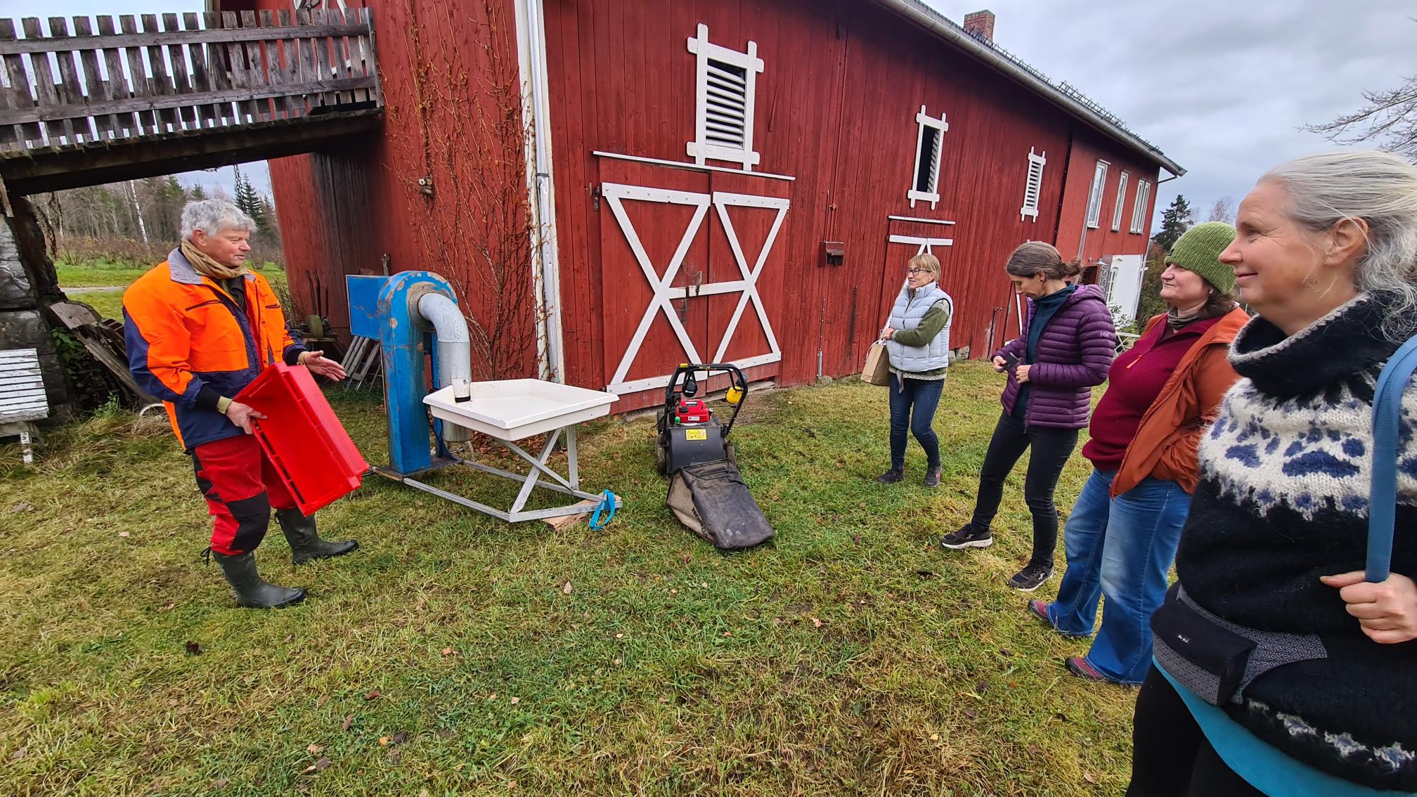 Vi avsluttet  samlinga med gårdsbesøk, hvor vi delte oss opp og reiste ut til forskjellige produsenter i nærområdet. Her fra Helge Hvoslef på Nes som driver solbærproduksjon. Andre besøkte Fredrik Magnussen eller Ingvild på Korsviken gård ved Lillehammer. Foto: Linden.