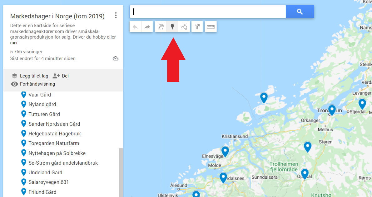 Her kommer en kort veileder til deg som ønsker å legge til et nytt kartpunkt for din virksomhet i kartet for Markedshager i Norge.