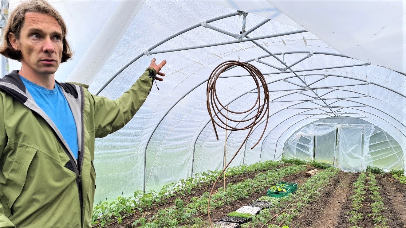 Simon og Jovana driv fram oppalsplanter sjølve, fyrst i kjellaren på huset og vidare i tunellen. Dei satsar på ein mindre tomatproduksjon i tunnellen, for å skape variasjon i grønsakskassene.